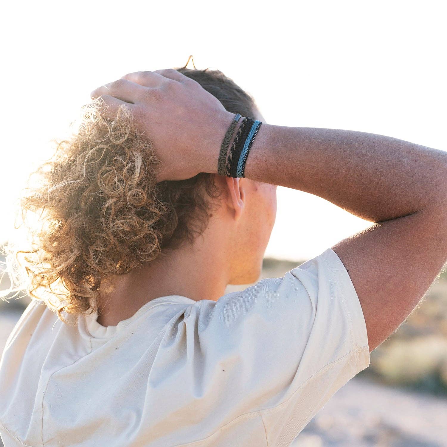 Our HUSTLE set includes five hair tie bracelets in strong colors of black, brown, and blue with matte black details. This set is perfect for guys and girls and will make all who wear it bring a little more hustle to their game. This set is a favorite for guys as well.
